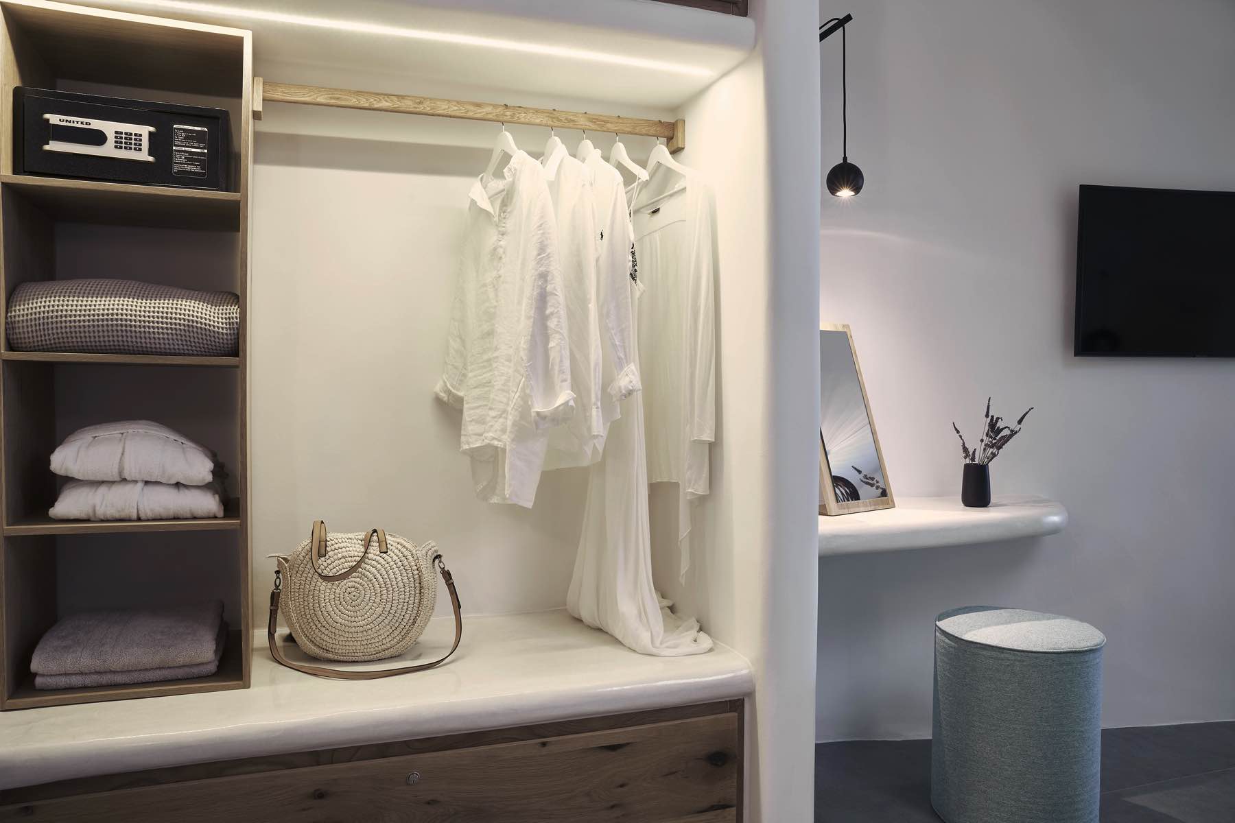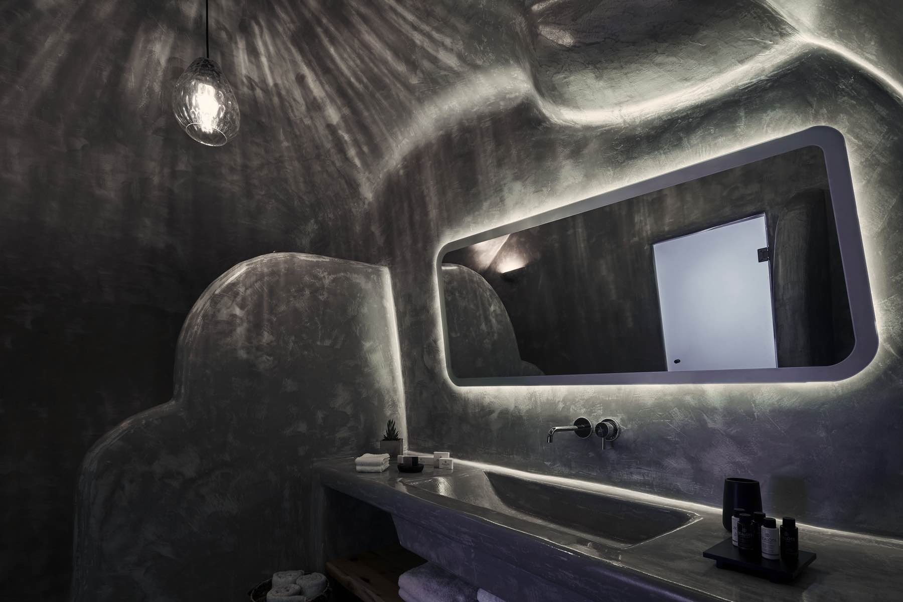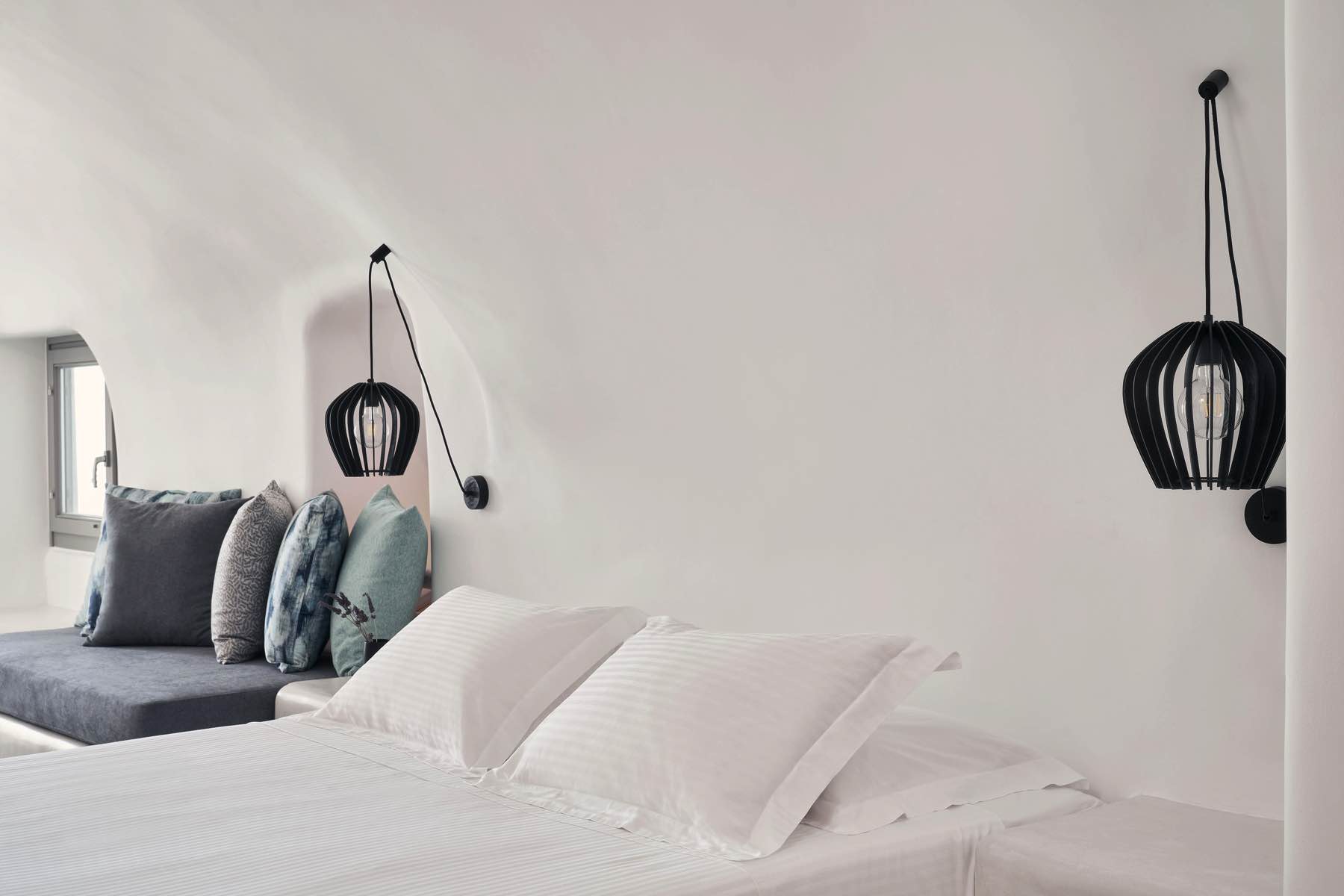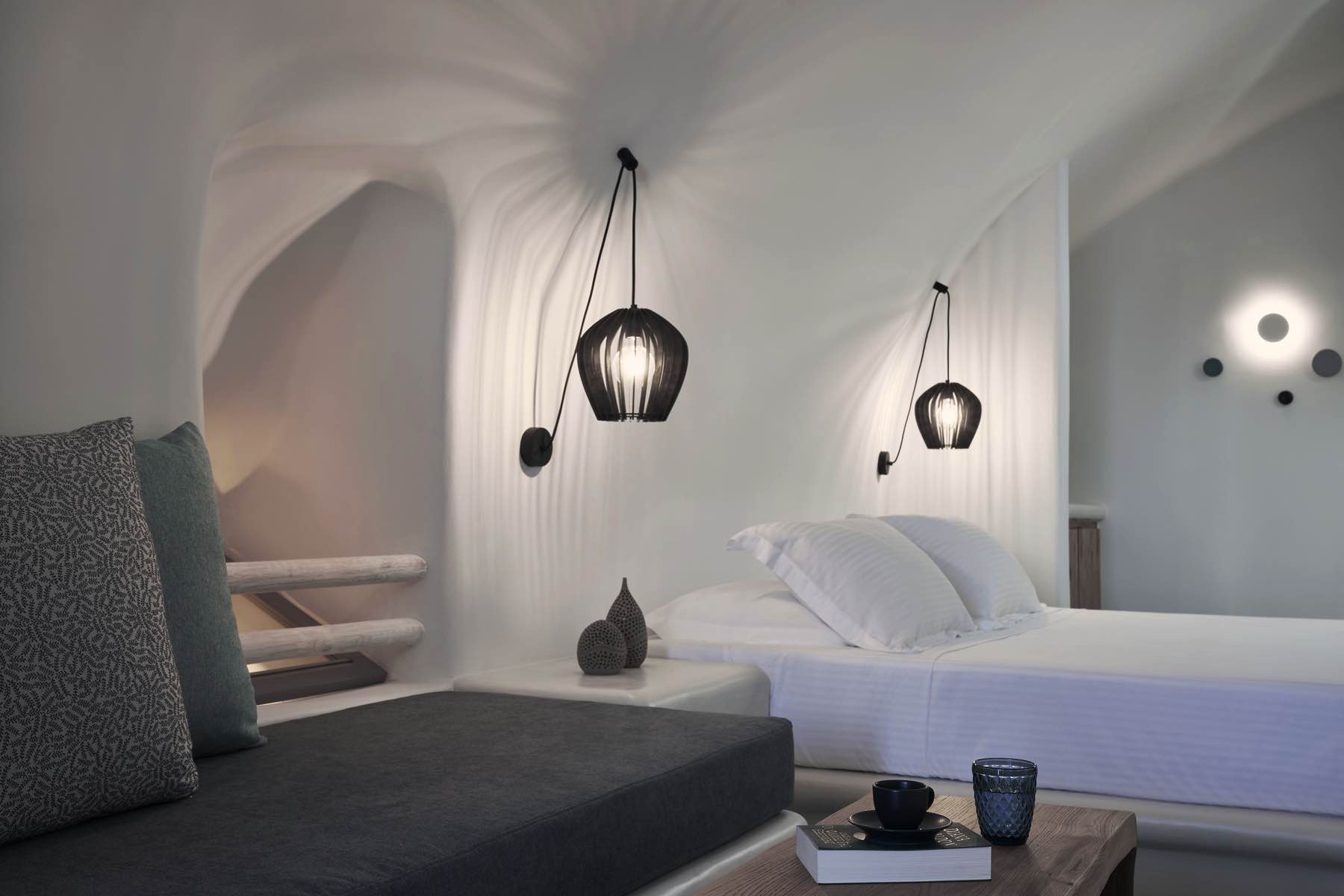 Bleding the architectural wonder of Oia’s cavehouses with liberating simplicity, the Alisaris Superior Suite is a sensational accommodation proposal designed to wow. Lavishly elegant yet pure and uncomplicated, this suite captures the eye and the heart from the moment you step into its pristine indoors. A King Size bed with an en-suite bathroom and a sitting area are your stay’s essentials, but what truly makes this suite extraordinary is the heated mini plunge pool, which flows you through a secret passage outdoors to your private slice of heaven, your terrace with breath-taking views to the sea and the volcano.